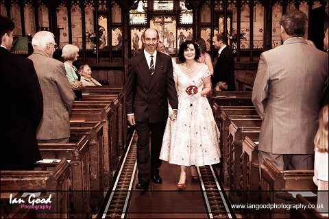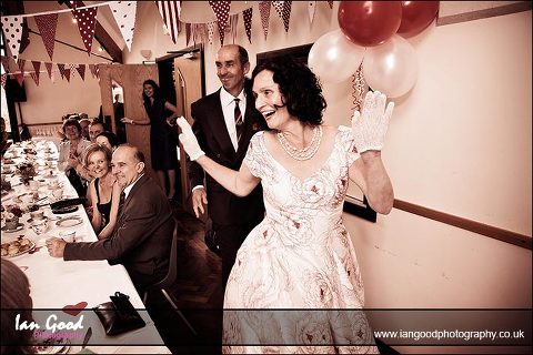 Adrienne and Richard chose a vintage theme for their wedding at the small Norman church of St James in Bramley and reception at the adjacent church hall. The persistent rain didn’t dampen the spirits but meant the celebrations were mostly inside the hall which had been beautifully decorated with balloons and Adrienne’s handmade bunting. The guests enjoyed some tea and scones on vintage crockery, before stepping outside for some photos under the shelter of a large tree. As luck would have it, the rain stopped just when it was time for me to leave them to enjoy their meal.