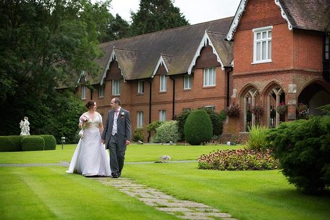 The village church of St Leonard in Cliddesden, Hampshire was the scene of Gill and Tony’s wedding last weekend. Afterwards, they traveled by horse drawn carriage to Audleys Wood Hotel for their reception, via a quick stop for a glass of champagne outside their local pub. The weather stayed fine, allowing Gill, Tony and their guests to enjoy the lovely grounds at Audleys Wood and the celebrations continued into the evening with some circle dancing in the marquee.
