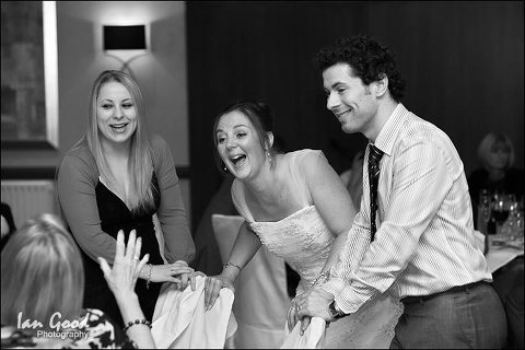 After a lovely ceremony in the barn, the happy couple led their guests around to the gardens of the old manor house for drinks and photographs on the lawn. Then it was over to the Norton Suite in the modern part of the hotel for the wedding breakfast. After the meal and speeches, everyone enjoyed a game of roulette and black jack before hitting the dance floor.